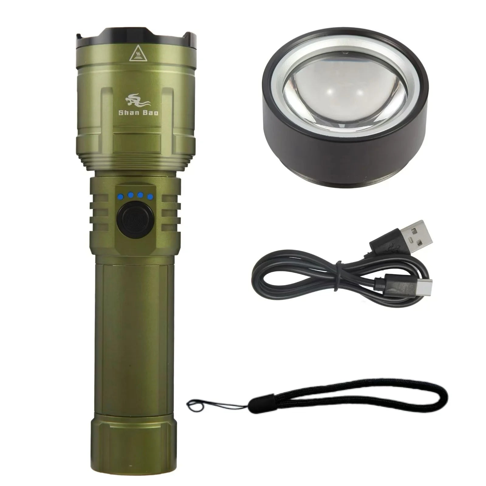 Shan Bao Green Outdoor Camping Mountaineering Zoom Flashlight Strong Light Focusing Light Source Can Ignite The Flame