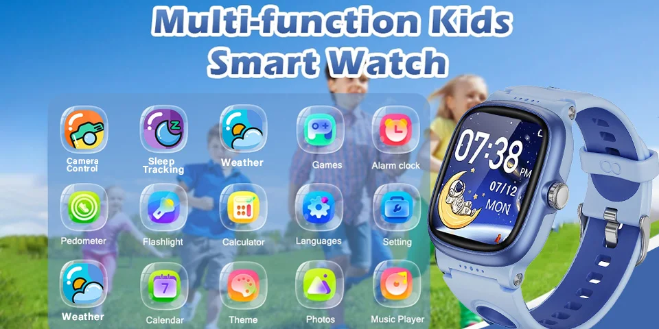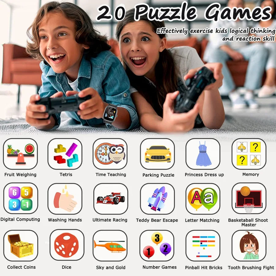 Smart Watch for Children 4-15 Years Old with 20 Games, Camera Control Alarm Clock Music Player Pedometer Birthday Gift (Blue)