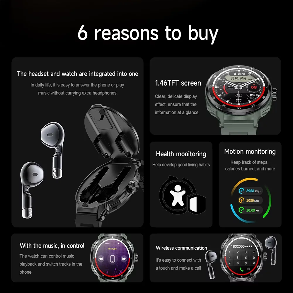 Smart Watch Men's Watch Sports Watch, magnetic charging, making/receiving calls, NFC function, multi-sport mode, message alerts