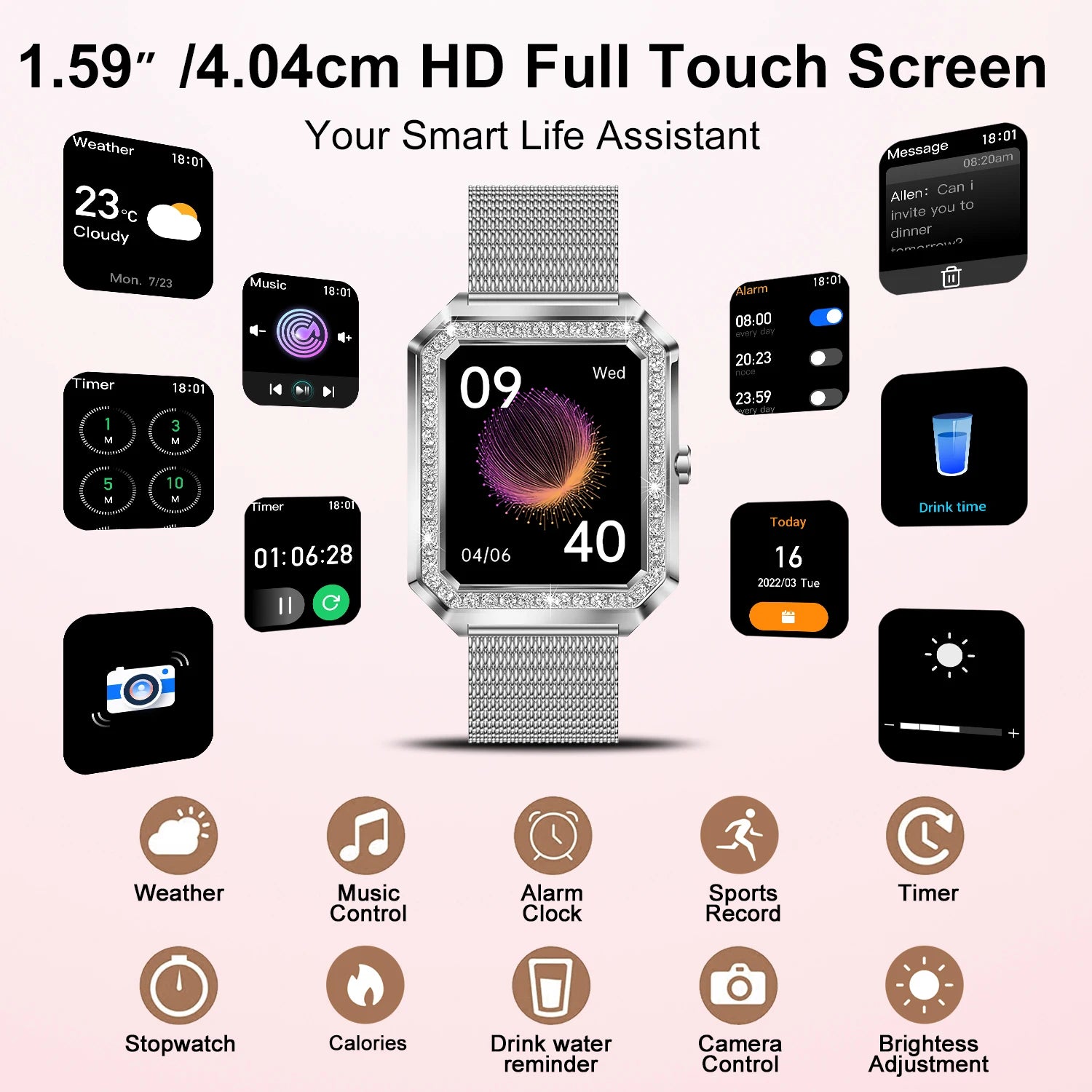 Smart Watch(Answer/Make Call),1.59"Touch Screen Smart Watch with Sports Modes/Voice Assistant/Music Player,Ideal Gift for Women