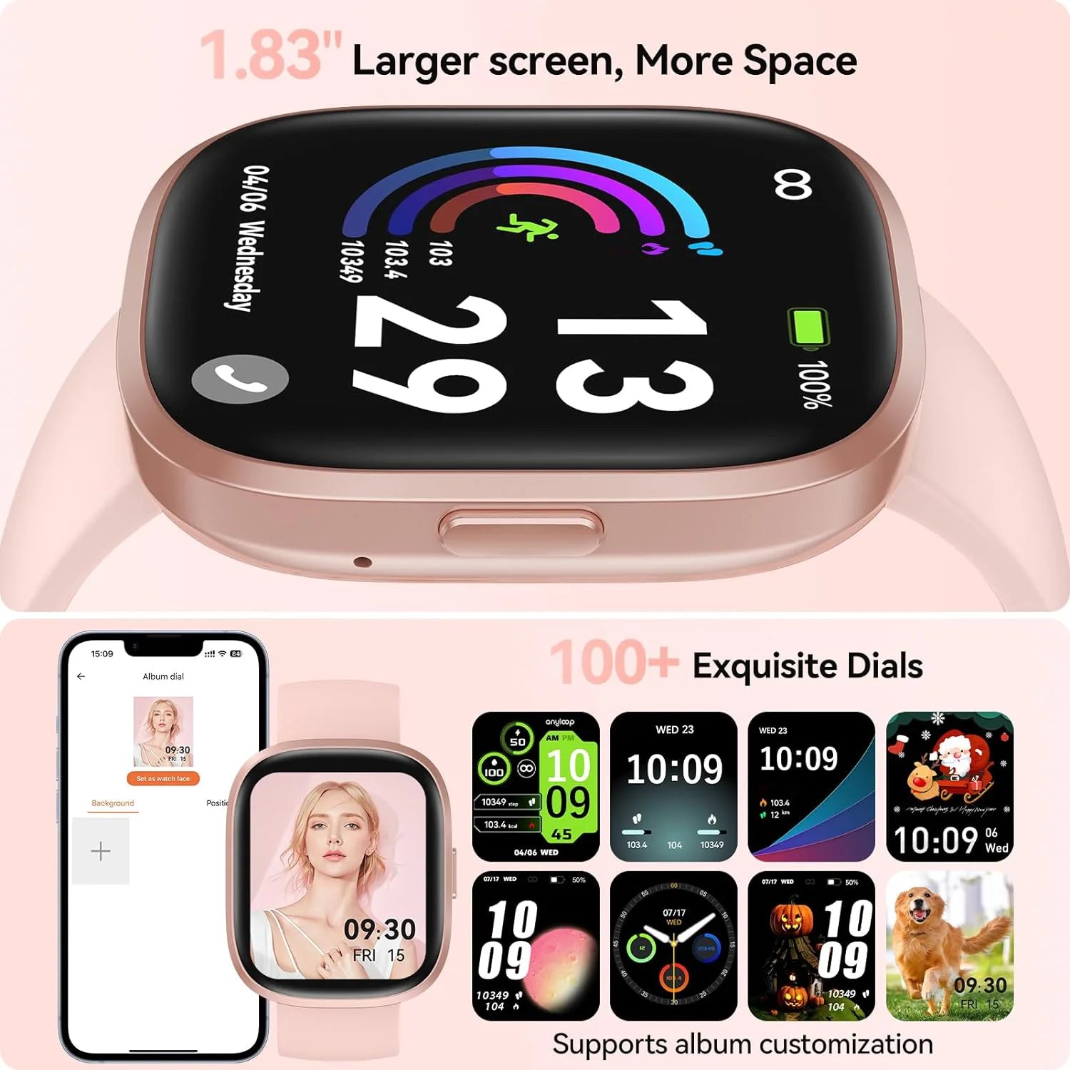 Smart Watch(Answer/Make Call), 1.83" HD Smart Watches for Men Women fitness Tracker Sleep Monitor
