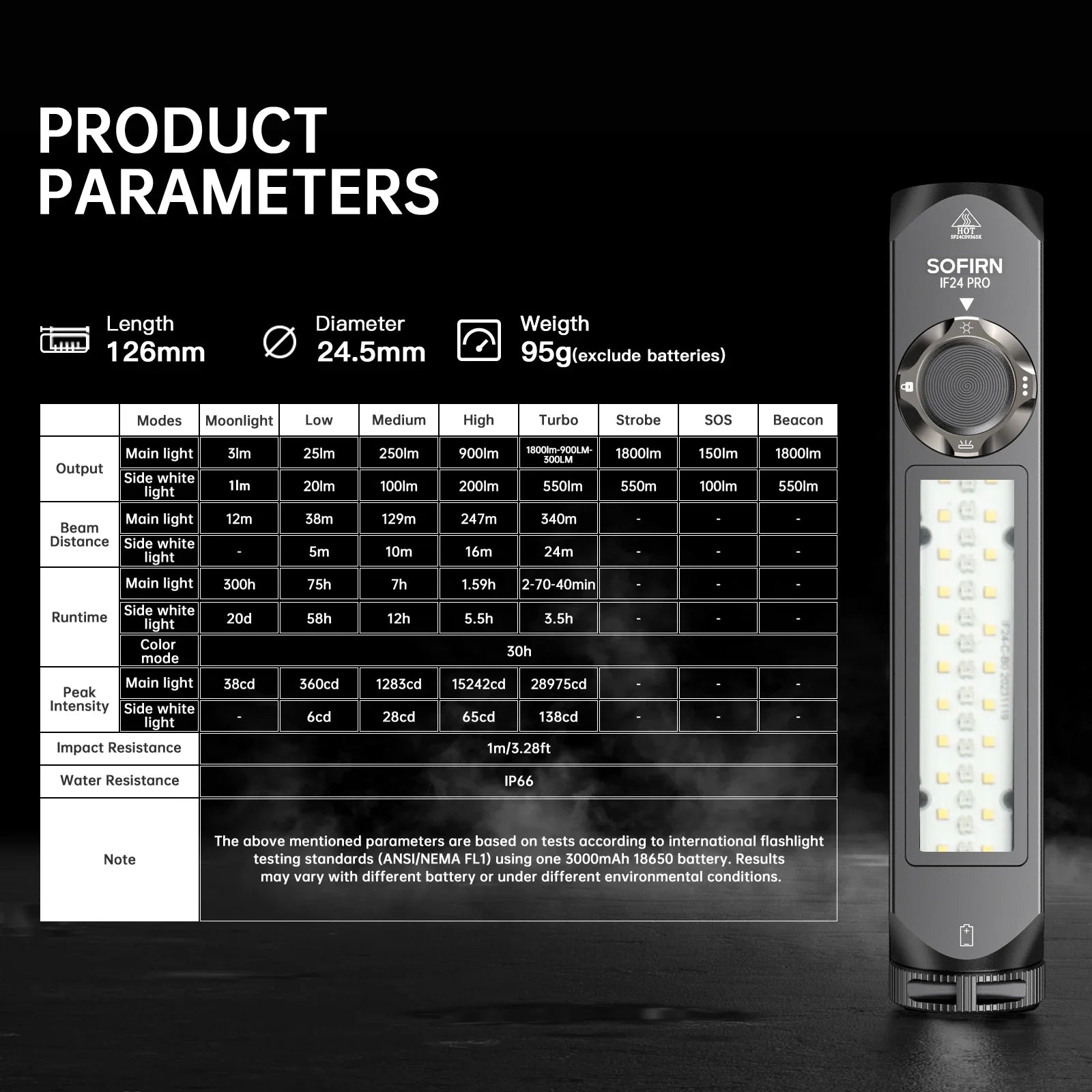 Sofirn IF24 PRO RGB Flashlight 18650 Rechargeable SFT40 1800lm Buck driver Flood Spot with Magnetic