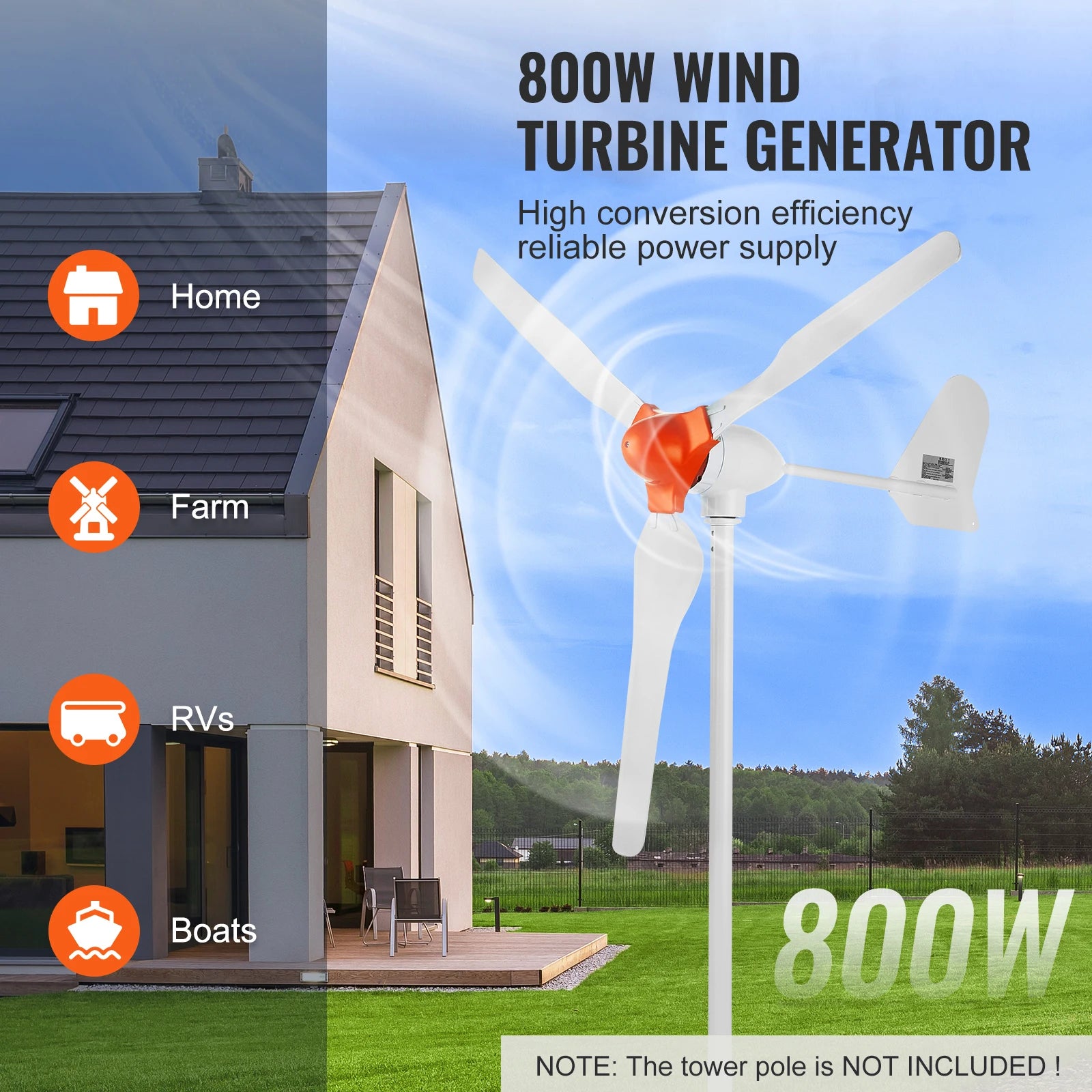 SucceBuy 500W/800W Wind Turbine Generator 12V Wind Turbine Kit Wind Power Generator with MPPT Controller for Home Farm RVs Boats
