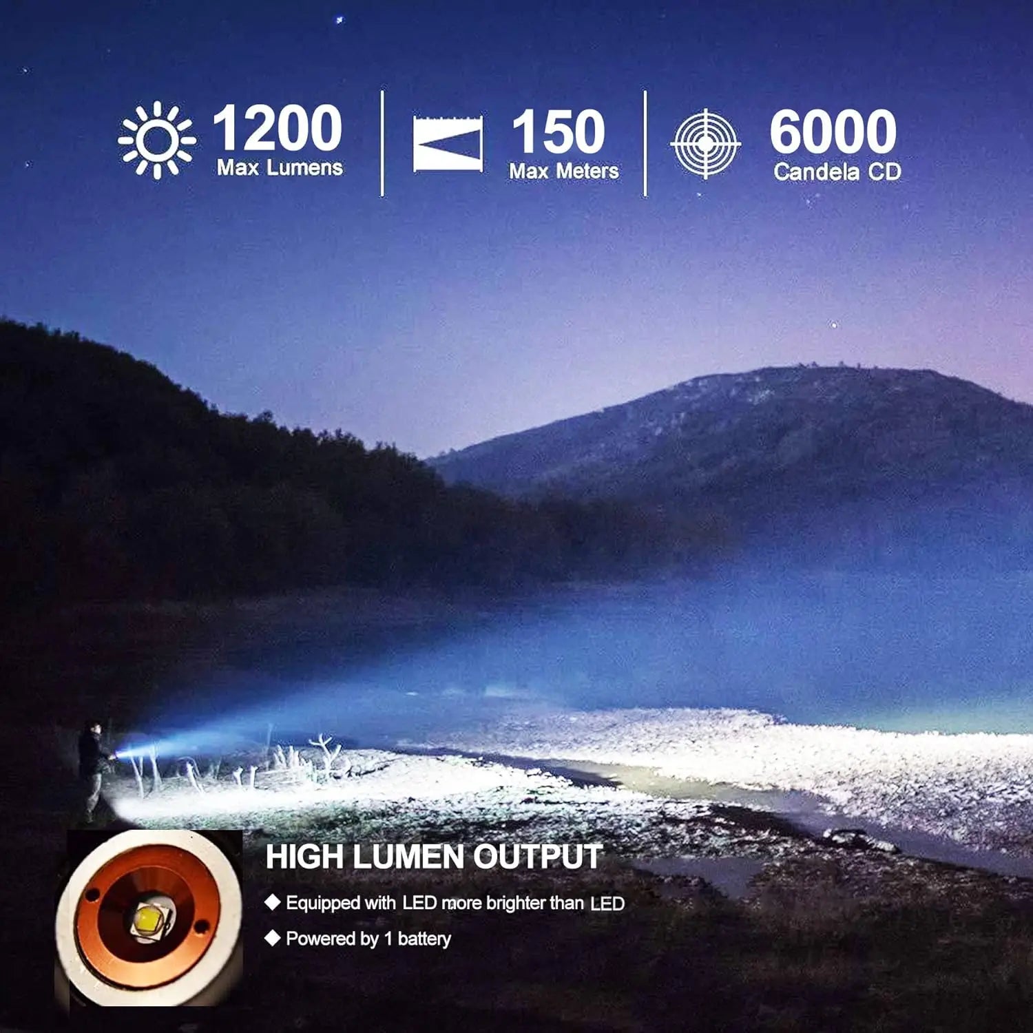 Super Bright Flashlight Torch -High Power White Light Beam,Remote Switch 2pcs Rechargeable Batteries Hunting Camping Fishing