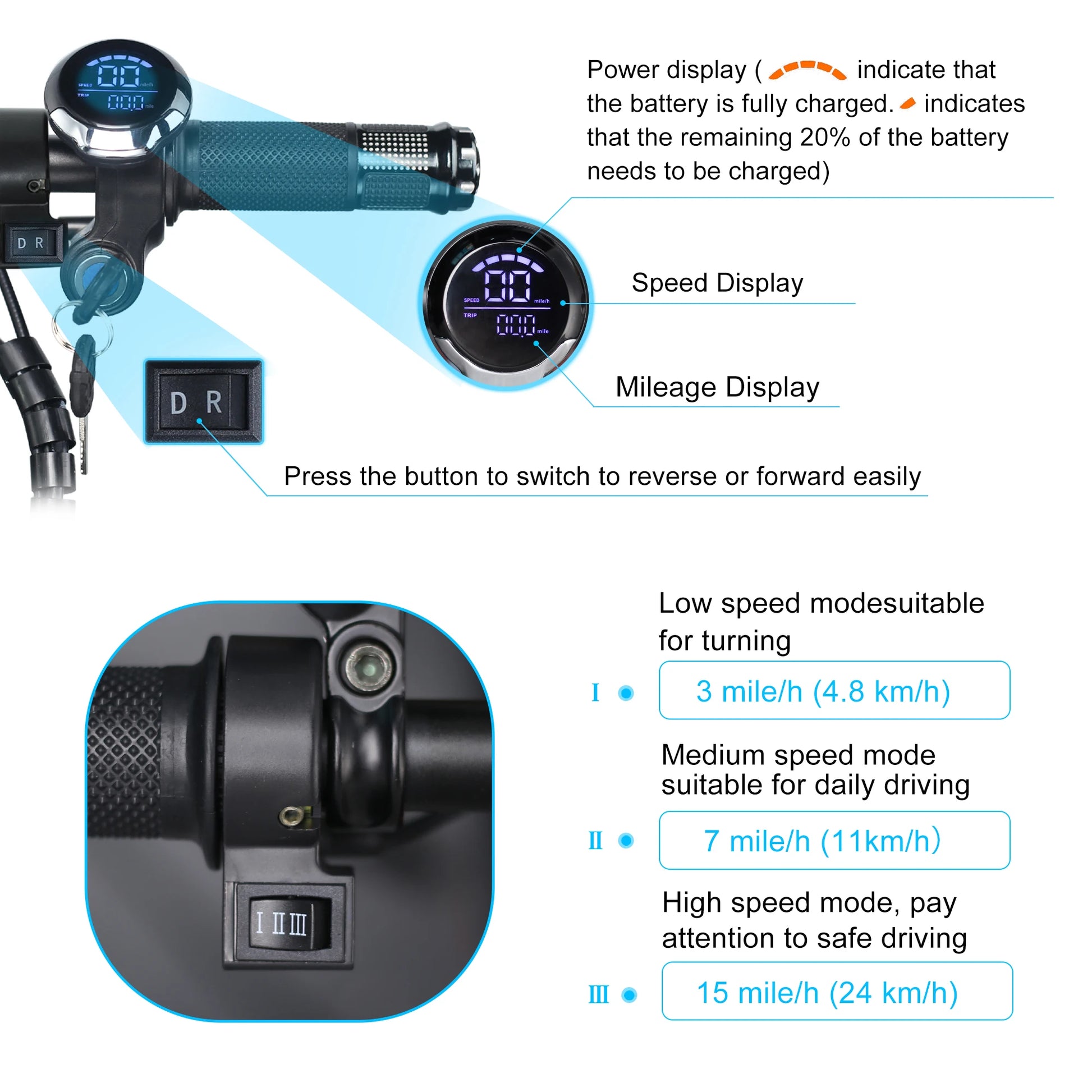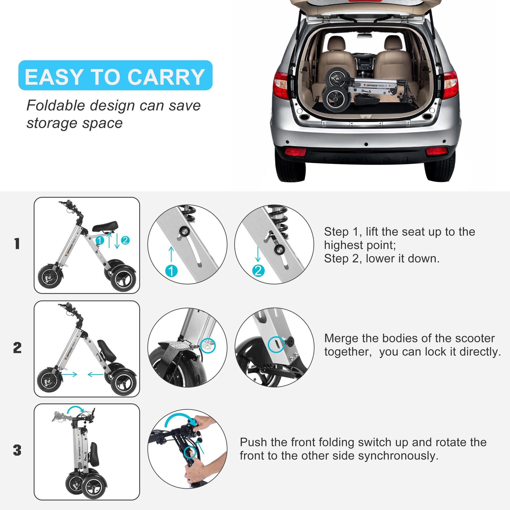 TopMate ES32 Electric Scooter 3 Wheels Foldable Trike with Seat for Adults, Light Weight Mobility with Reverse Function and Key