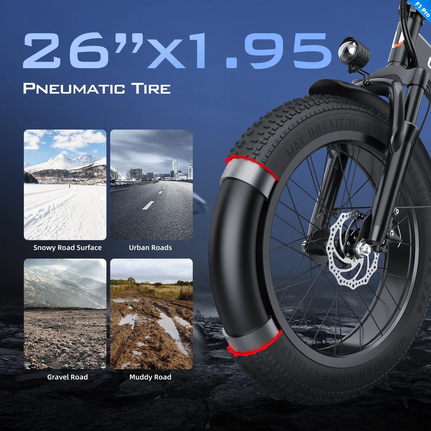 UNIBIKE F1 PRO E-Bike 748W Motor 48V15AH Removable Lithium Battery Dual Hydraulic Brake Electric Bike 20*4-Inch Fat Tire E-Bike