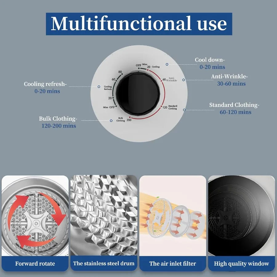 VCJ Portable Clothes Dryer for Apartment 10lbs Compact Electric Laundry Dryer with Stainless Steel Tub 1.5 cu.ft Suitable for A