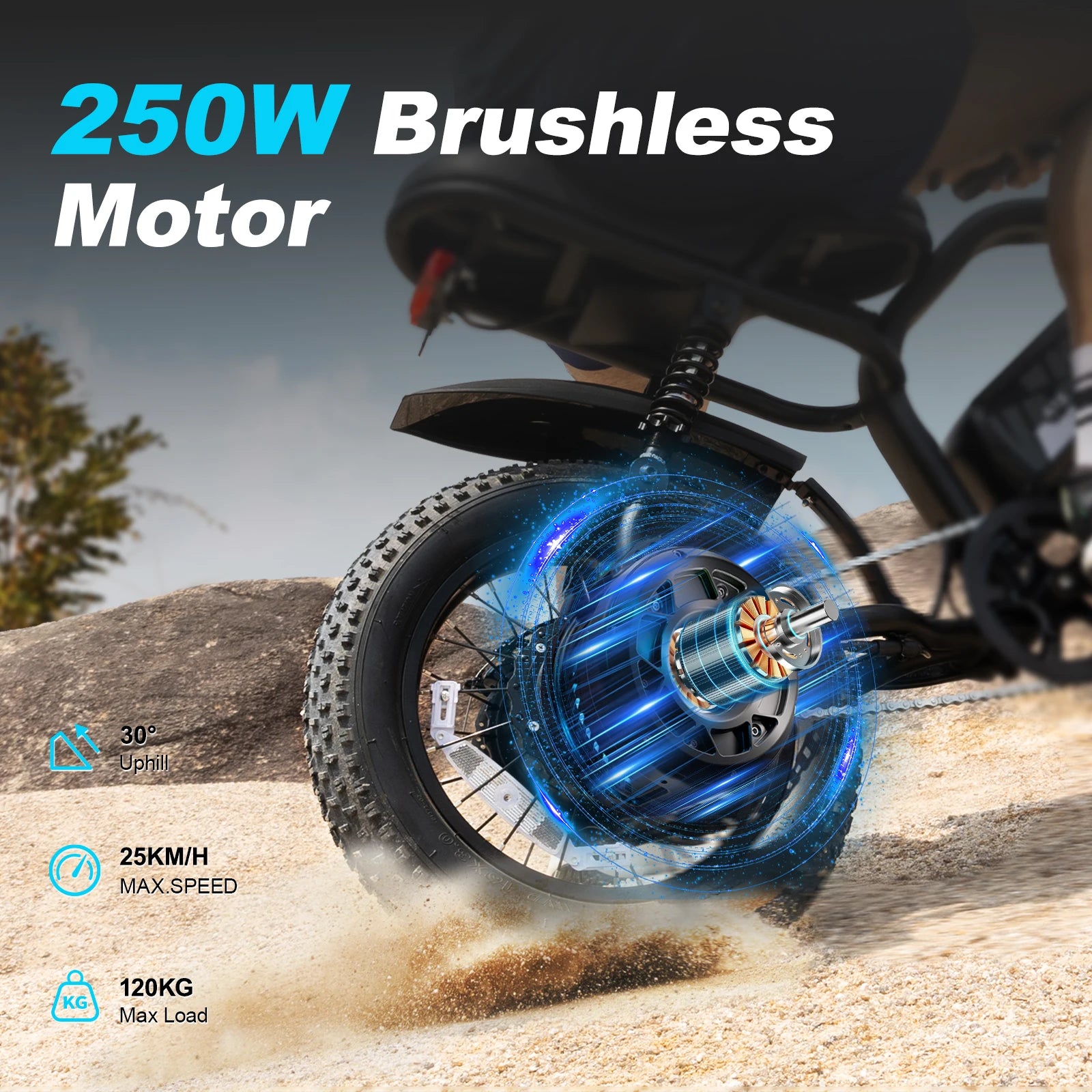 VDL Mountain Electric Bike , 16" Fat Tire Ebike, Wider Seat 800W Peak Motor, Removable Battery, Front Fork Suspension