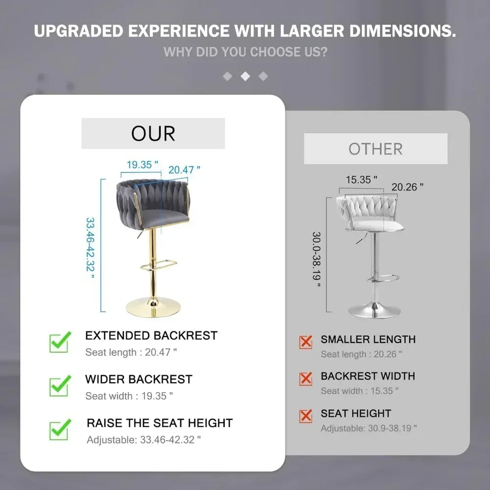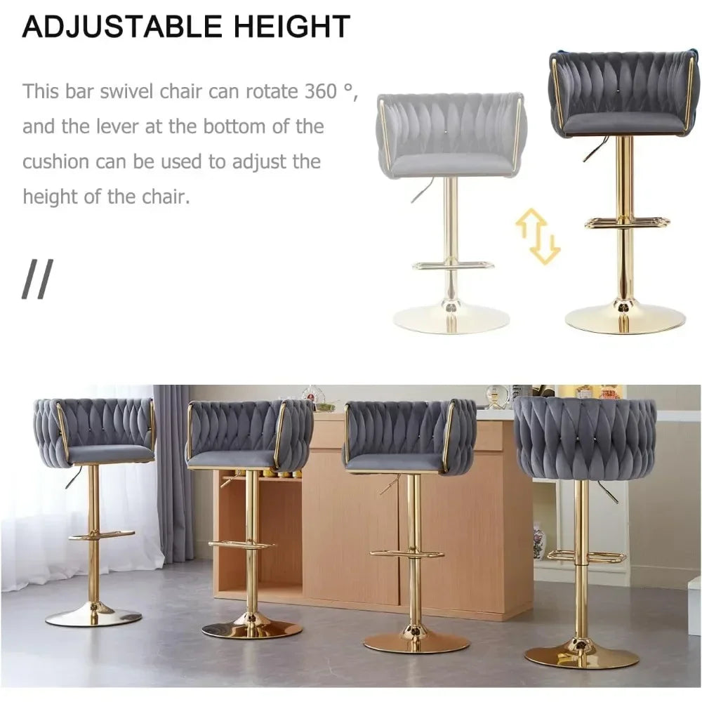Velvet Bar Stools Set of 4 - Modern Adjustable Swivel Counter Height Chairs with Woven Back, Kitchen Island Chairs