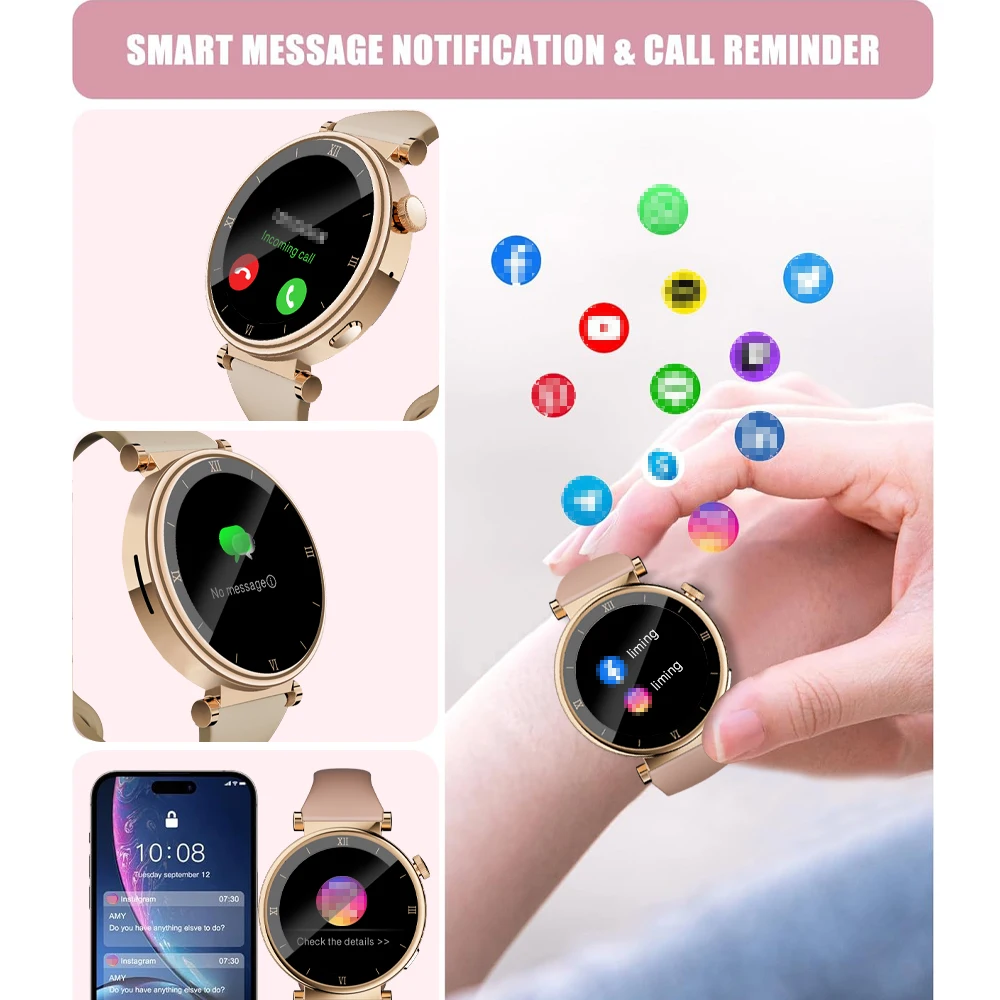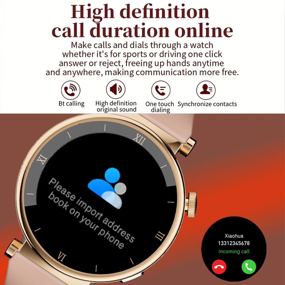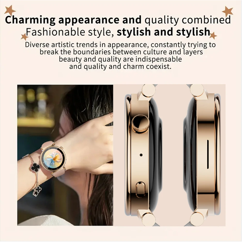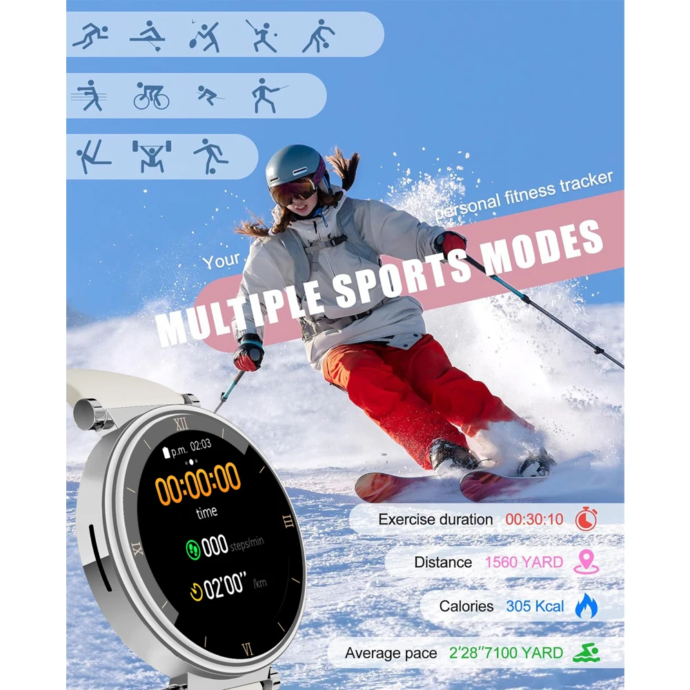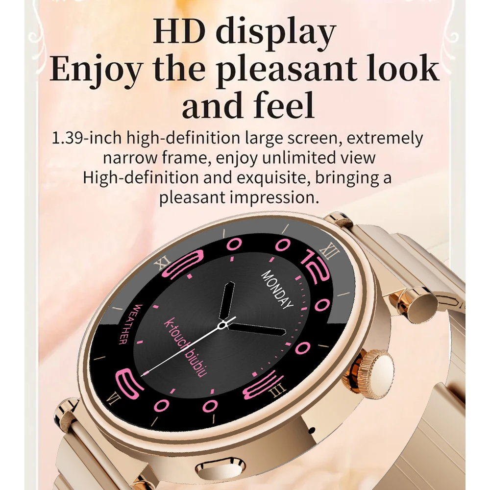 Smart watch women is equipped with 1.39" (display area) high-definition full touch screen, the large screen allows you to easily read information in the sun or dark, bring you unique vision and a better usag experience. Always-on display function can display all the day, you can easily read time and others, more convenient