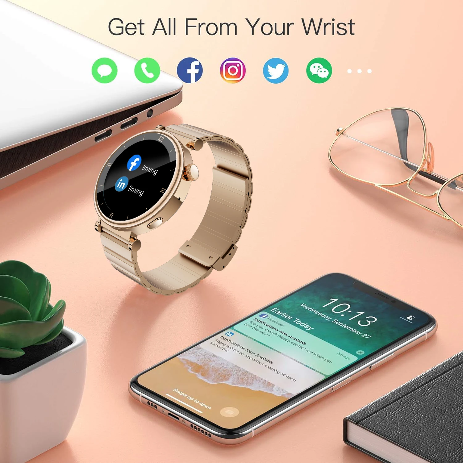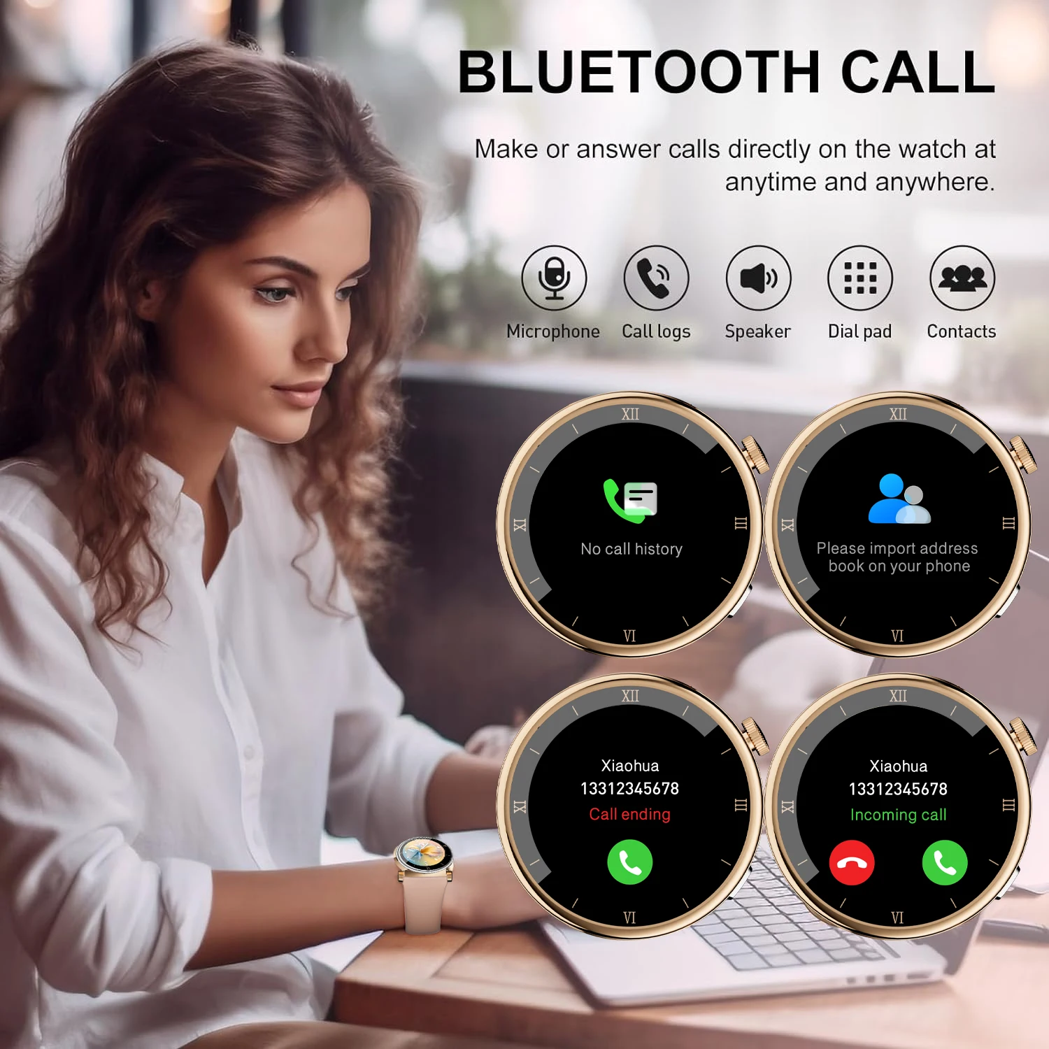 W&O X6 Pro smart watches for women has built-in high-definition speakers and microphones. After bluetooth is connected, you can directly use the smart watch to answer or make calls, add contacts, and view recent call records. You can also receive messages on smartwatch from various social platforms. Never miss a call or message during exercise or running