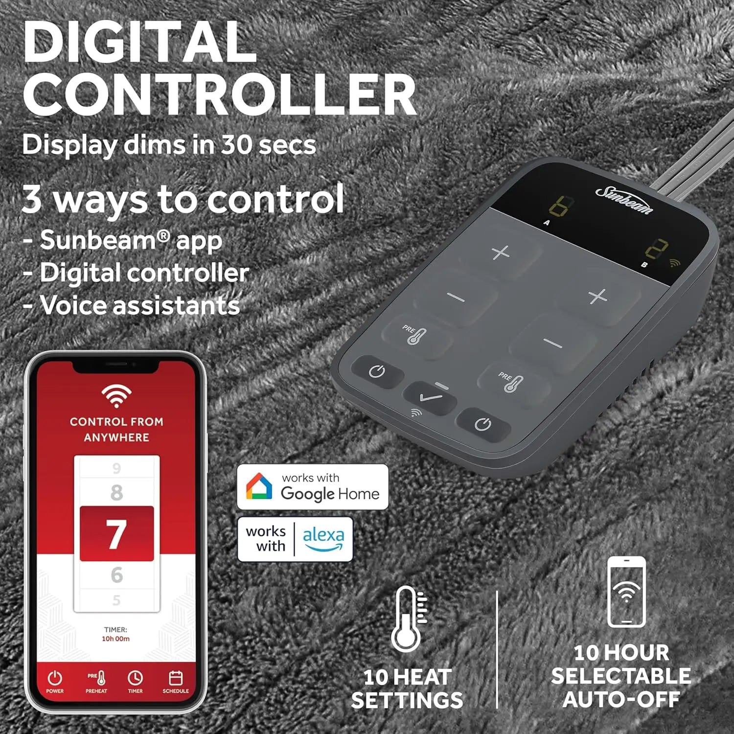 Wi-Fi Connected Heated Blanket with 10 Heat Settings, King Size, Slate Gray