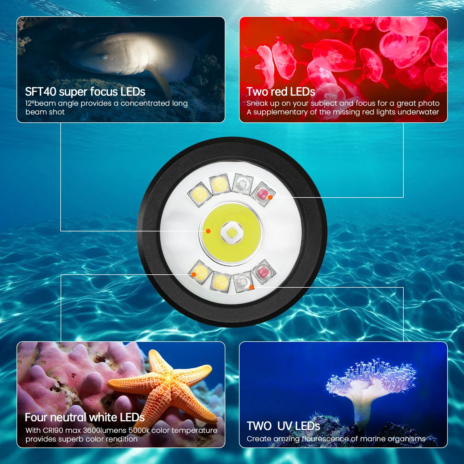 Wurkkos DL08 Powerful 3600lm Flashlight 21700 Rechargeable Diving Light with Rotary Magnetic Switch 6500K Underwater Torch IP68