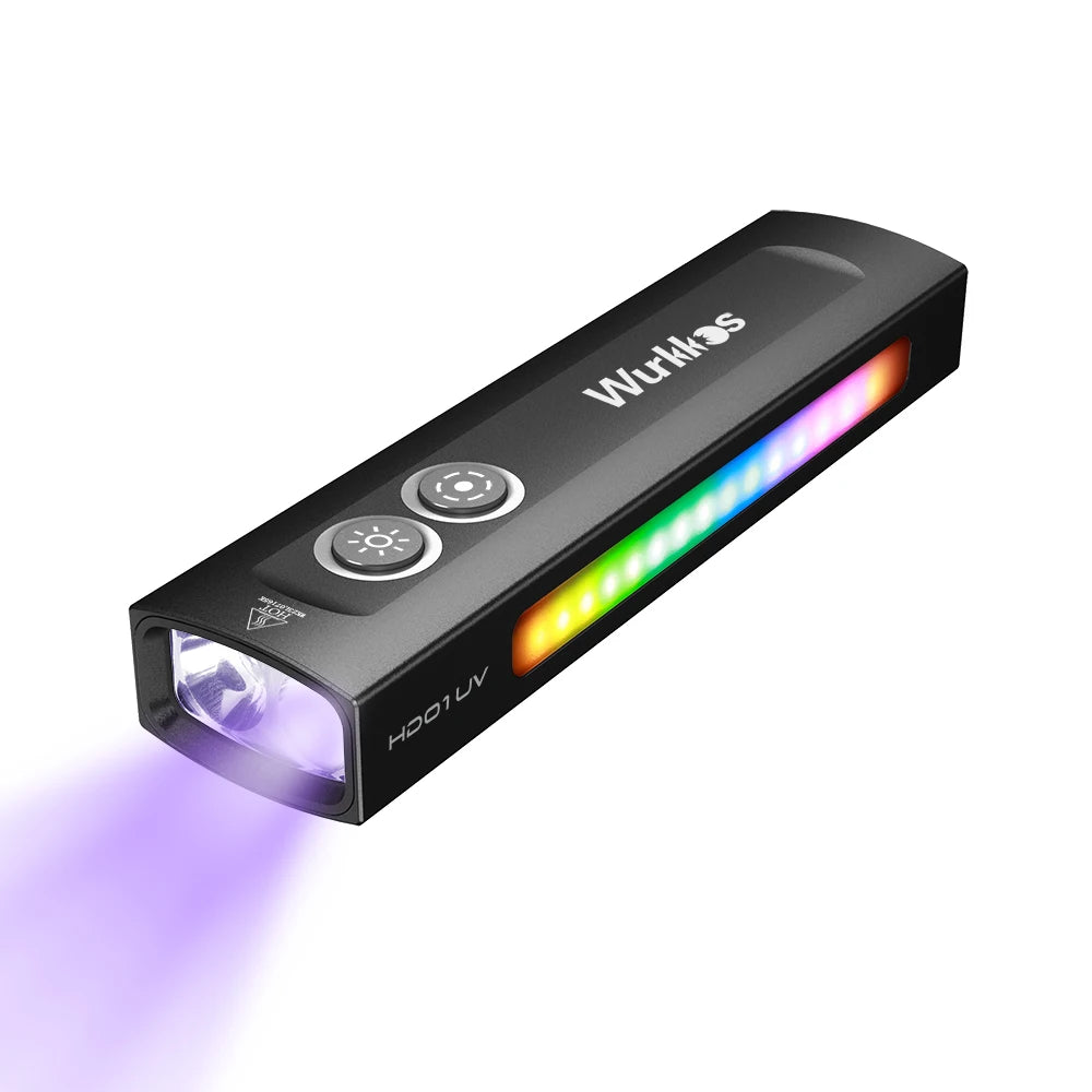 Wurkkos HD01 UV Multifunctional EDC Flashlight 1200 LM with 365nm UV light White flood 90CRI LED Waterproof Side RGB Lights IP65