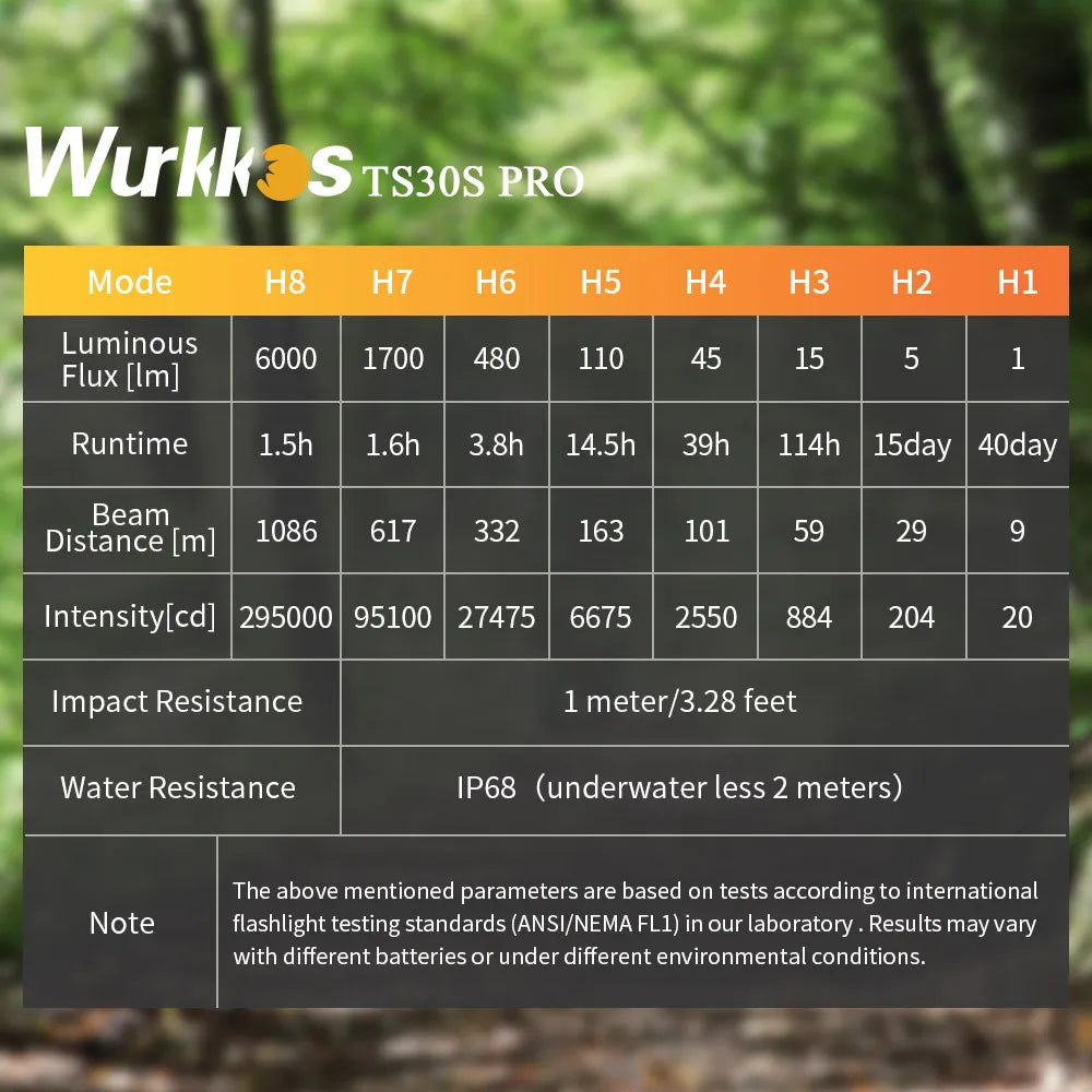 Wurkkos TS30S Pro 21700 Rechargeable Tactical Flashlight LED USB-C Powerful Torch MAX 1086M IP68 Waterproof Anduril 2 Power Bank